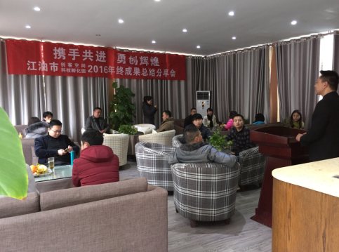 2017年1月20日,江油市科技孵化園、江油創客空間在科源科技孵化器管理部陳總經理的協調組織下,成功在江油創客空間咖啡廳舉辦以“攜手共進·勇創輝煌”為主題的入孵企業2016年終成果分享會。