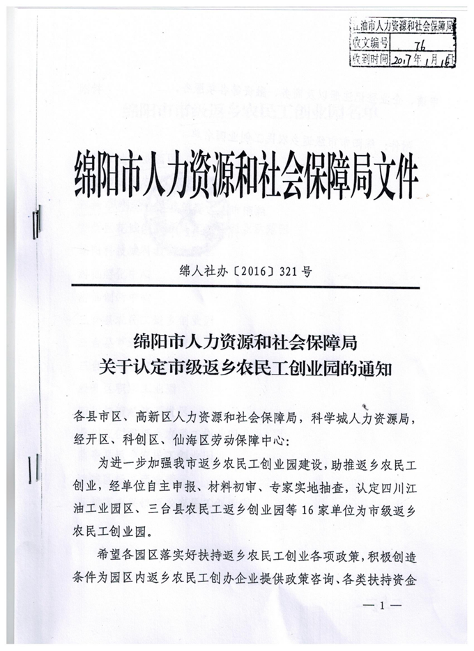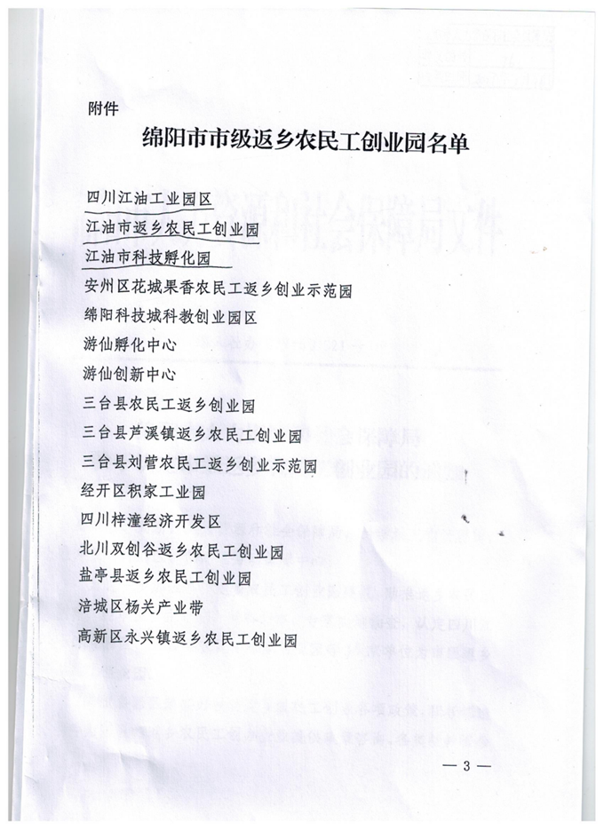 近日,江油市科技孵化園被認定為綿陽市市級返鄉(xiāng)農(nóng)民工創(chuàng)業(yè)園。